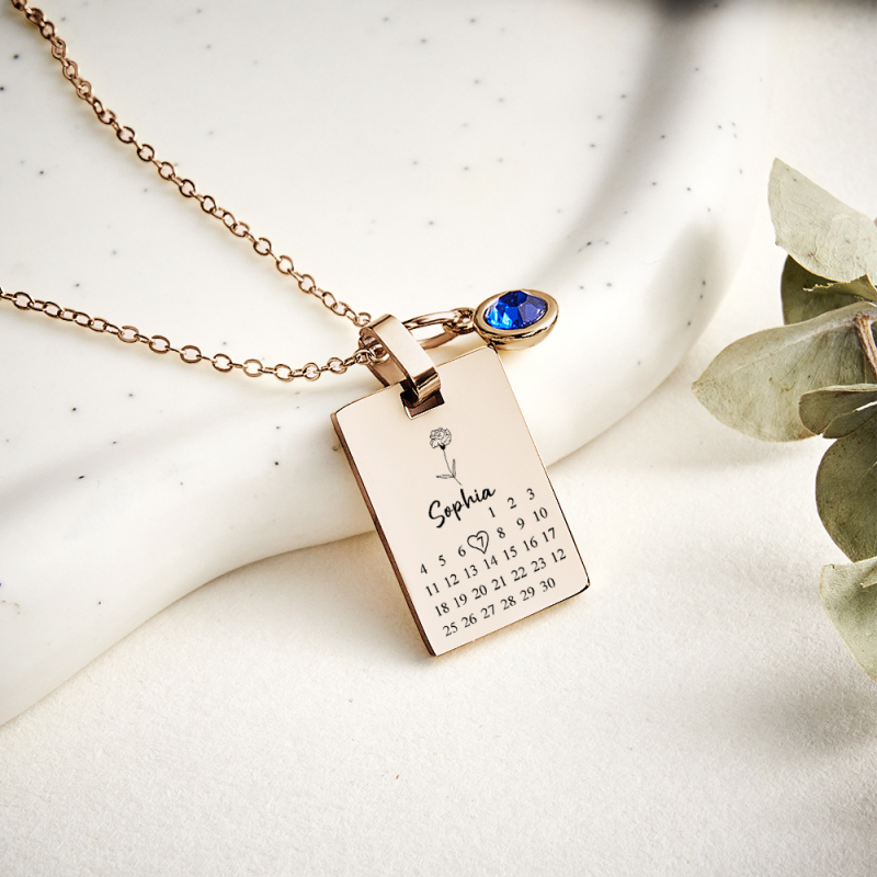 Collana Personalizzata Con Data E Pietra Portafortuna Per Anniversario, Collana Con Calendario Personalizzato E Pietra Portafortuna, Regalo Di Compleanno Per Lei