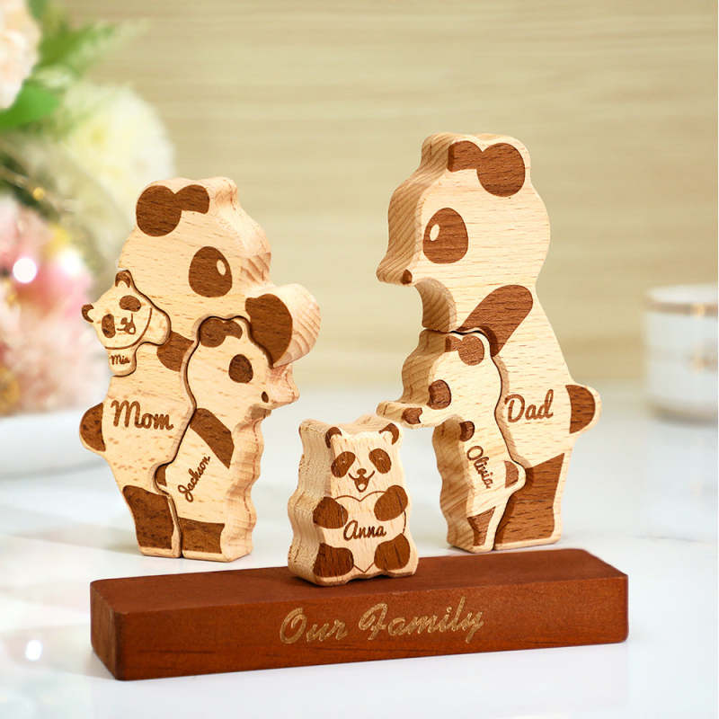 Nomi Personalizzati Panda In Legno Famiglia Block Puzzle Regali Per Decorazioni Per La Casa