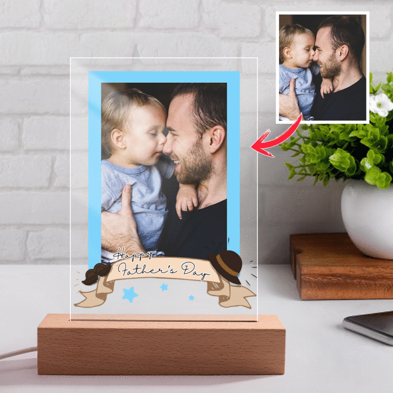 Luce Notturna Personalizzata con Foto Incisa Festa del Papà Regalo