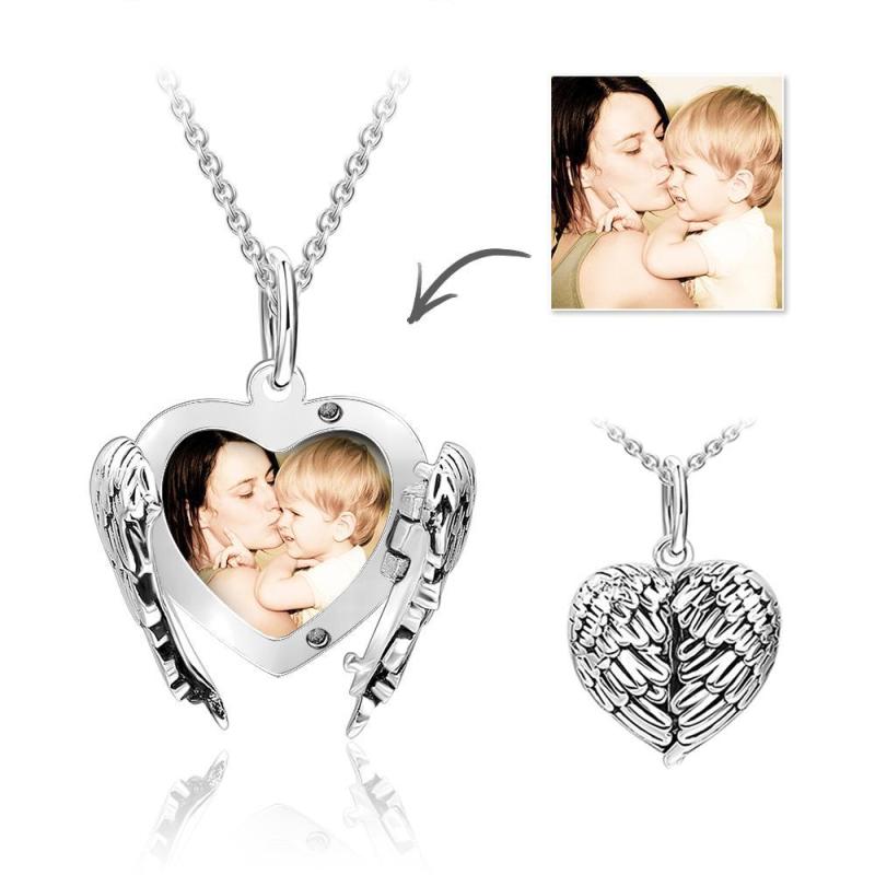 Collana Con Foto Personalizzata Collana Con Ali D'Angelo Personalizzata Regalo Unico