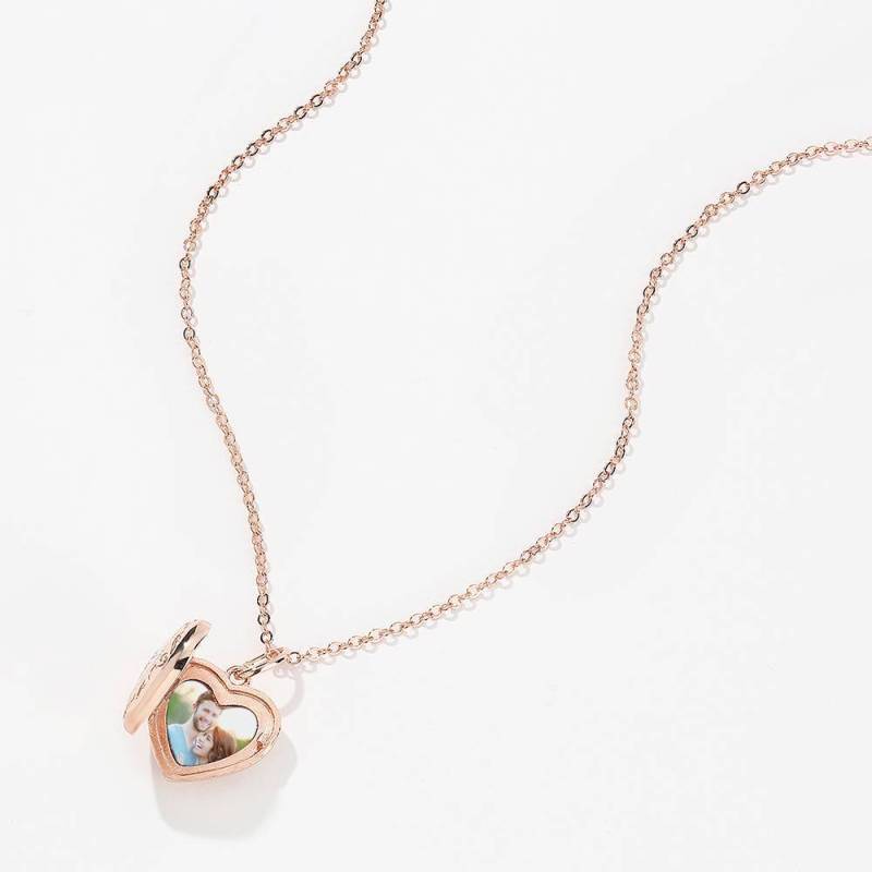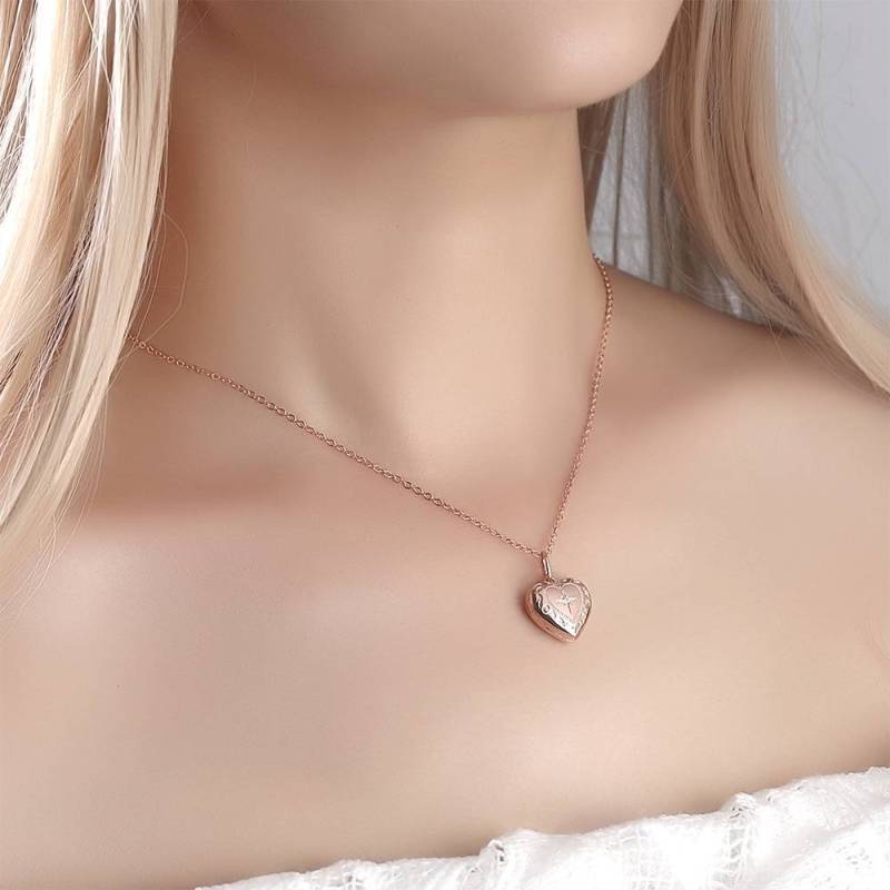 Collana Con Medaglione A Cuore Con Stampa In Rilievo Placcato Oro Rosa