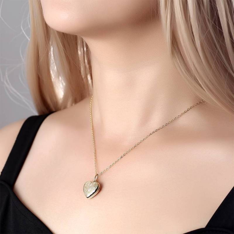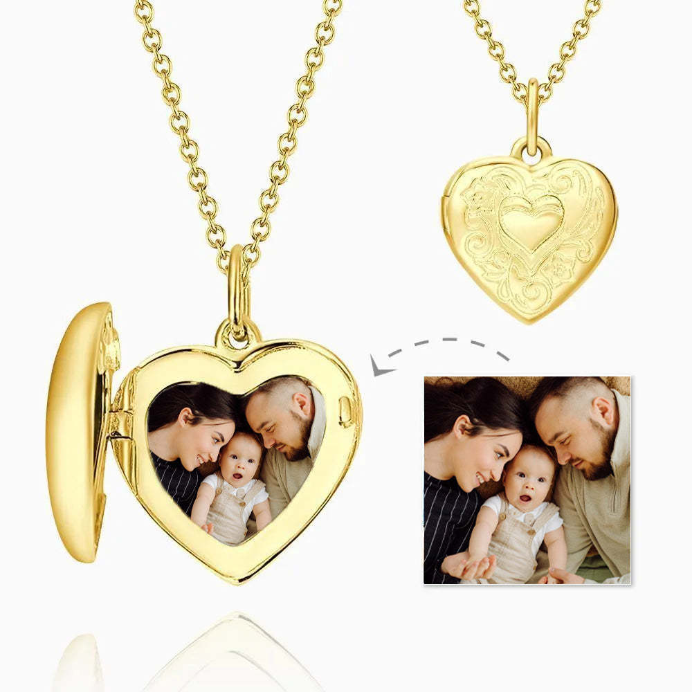 Collana Con Medaglione Con Foto A Cuore Con Stampa In Rilievo E Incisione In Oro 14k, Regalo Di Anniversario Per Lei