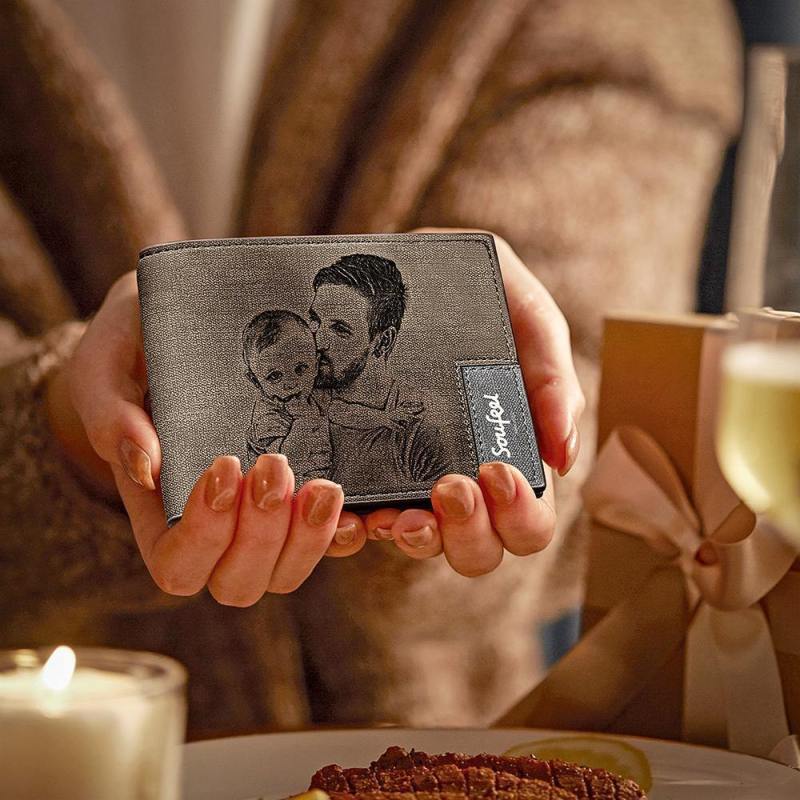 Men's Bifold Custom Inscription Photo Engraved Wallet - Coffee Leather - yournamenecklaceuk Men's Bifold Custom Inscription Photo Engraved Wallet - Coffee Leather - yournamenecklaceuk
