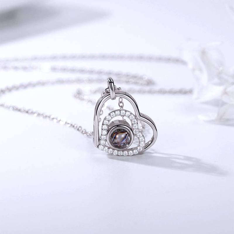 Collana Personalizzata I Love You Con 100 Lingue Collana Con Foto Incisa Con Proiezione, Regalo Perfetto Argento