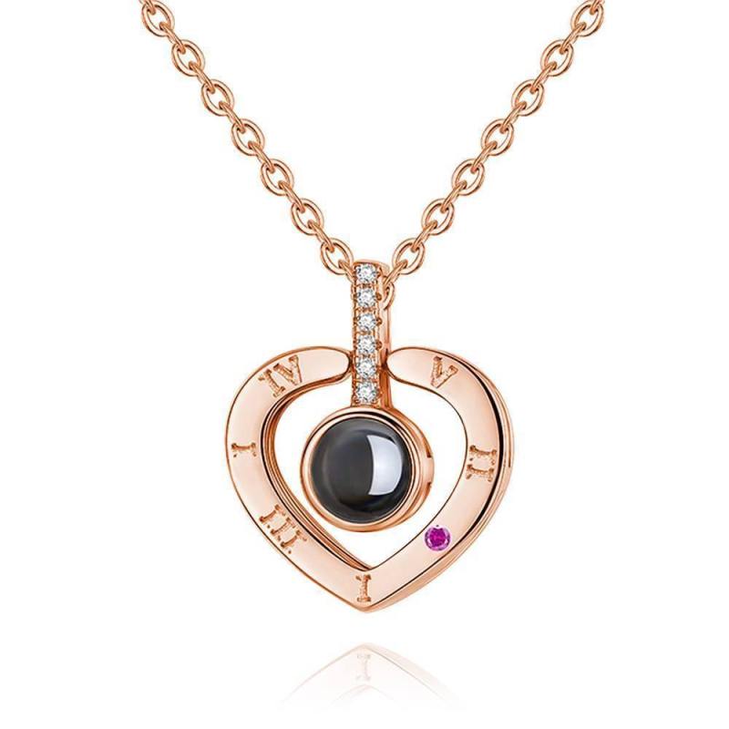 Collana Ti Amo In 100 Lingue Collana Con Proiezione Di Foto A Forma Di Cuore In Argento - Placcato Oro Rosa