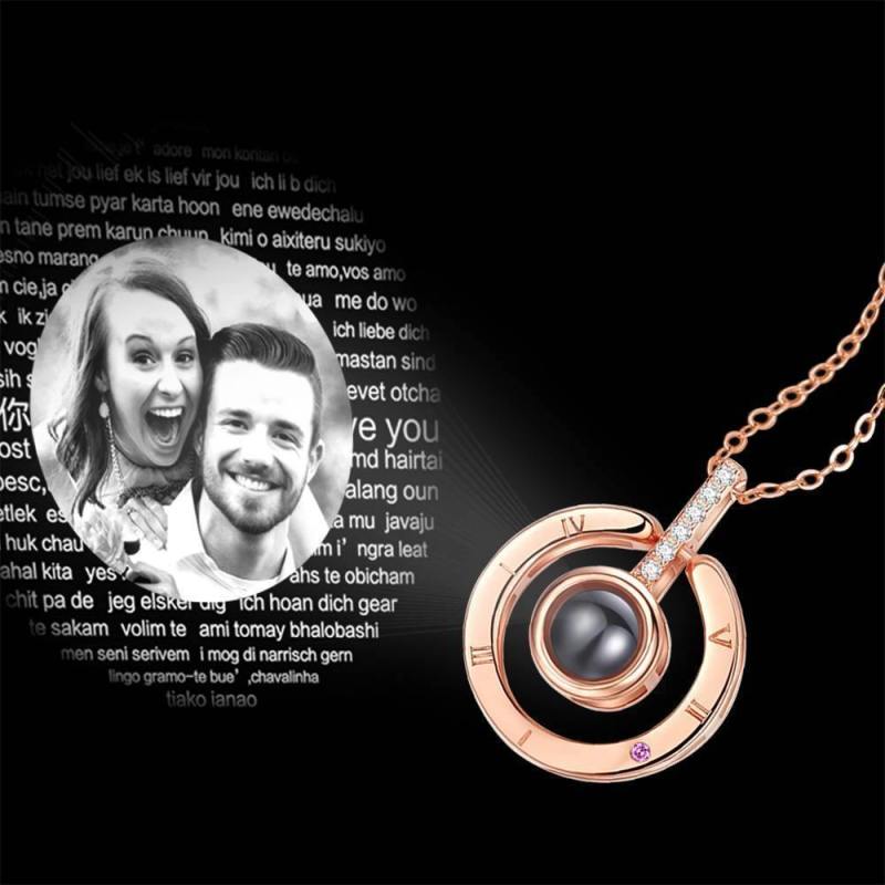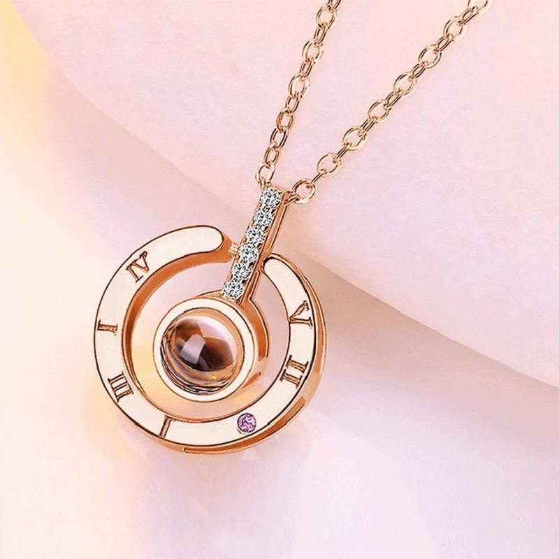 Collana Ti Amo In 100 Lingue Collana Con Proiezione Di Foto A Forma Rotonda In Argento - Placcato Oro Rosa