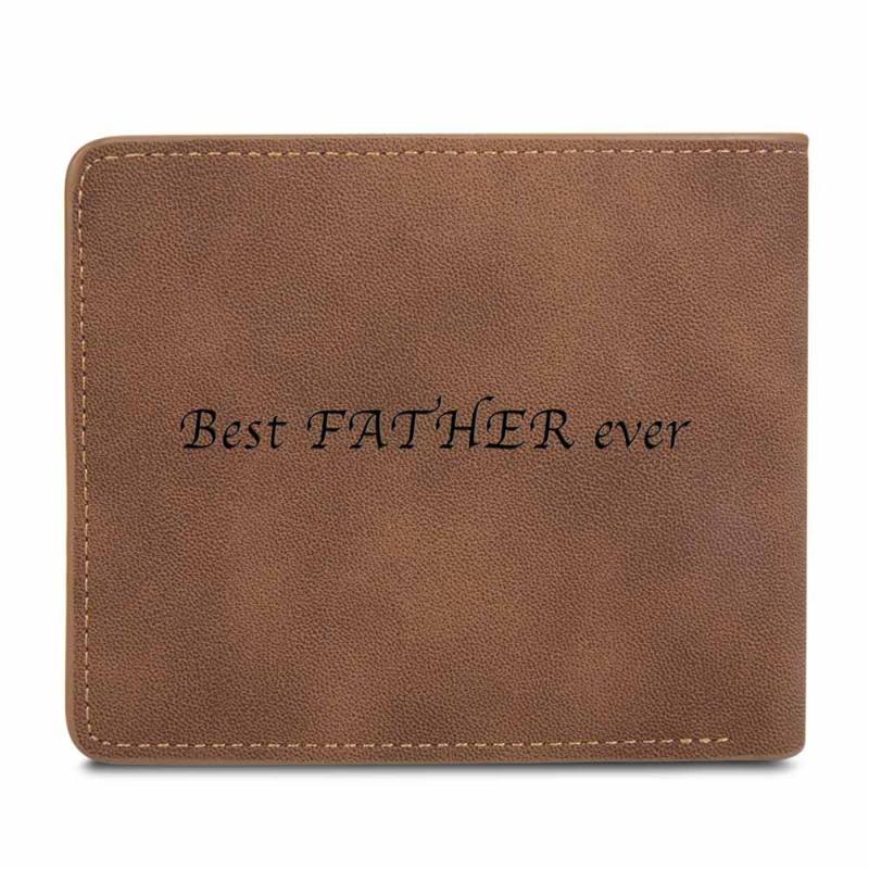 Portafoglio Da Uomo Bifold Con Iscrizione Personalizzata Con Foto Incisa - Pelle Marrone