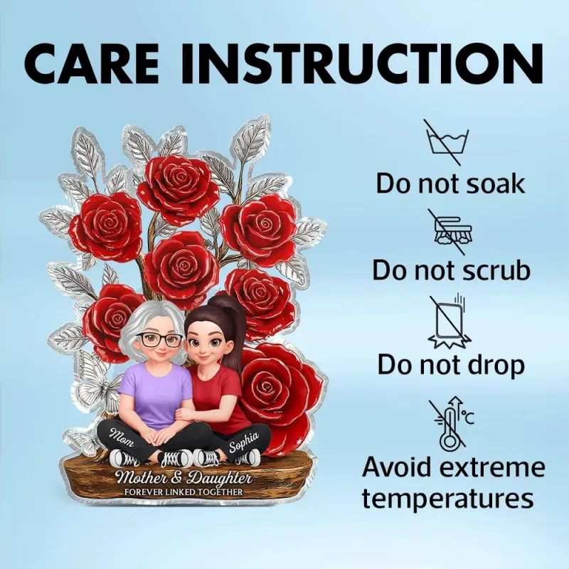 Regalo Per La Festa Della Mamma, Targa In Acrilico Personalizzata Con Madre E Figlia Legate Per Sempre, Decorazione Da Tavolo Con Rosa Raffigurante Un Cartone Animato, Commovente