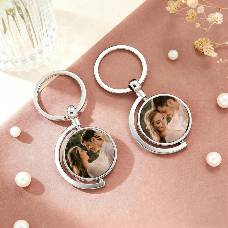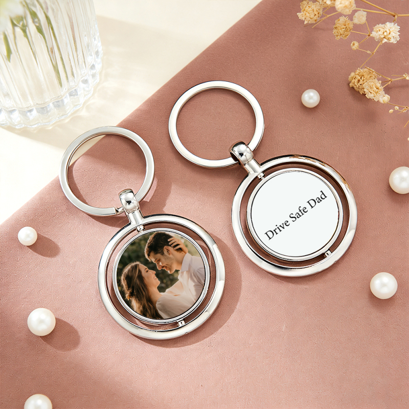 Portachiavi Girevole Con Foto Bifacciale Personalizzata, Portachiavi Con Immagine Rotante Personalizzata, Due Foto O Opzione Citazione Personalizzata, Regali Di Natale