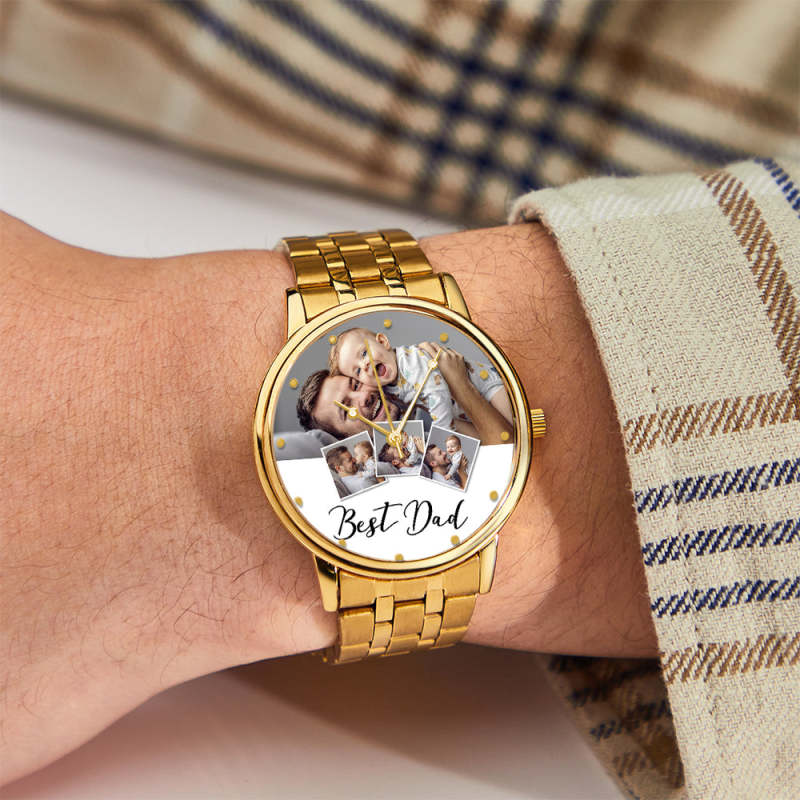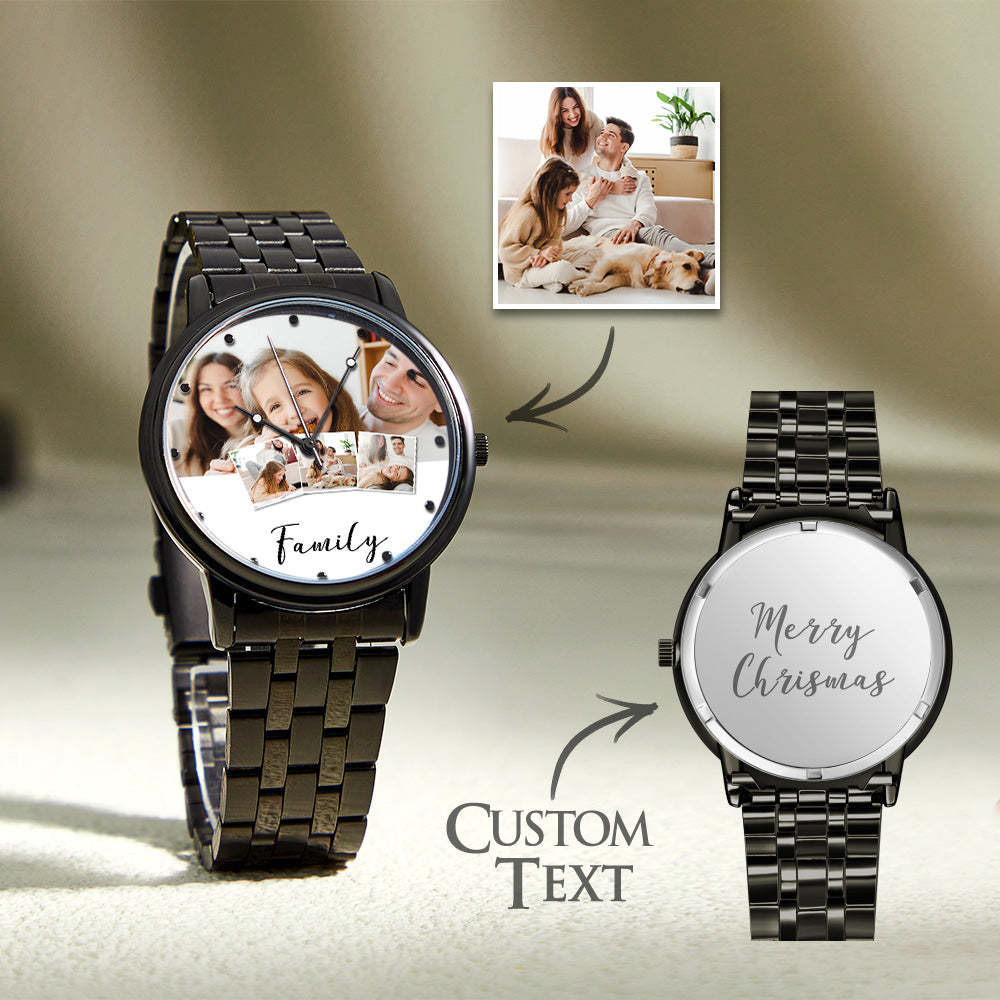 Orologio Da Uomo Con Cinturino In Lega Nera Personalizzato Con Foto Incisa, Regalo Per La Festa Del Papà