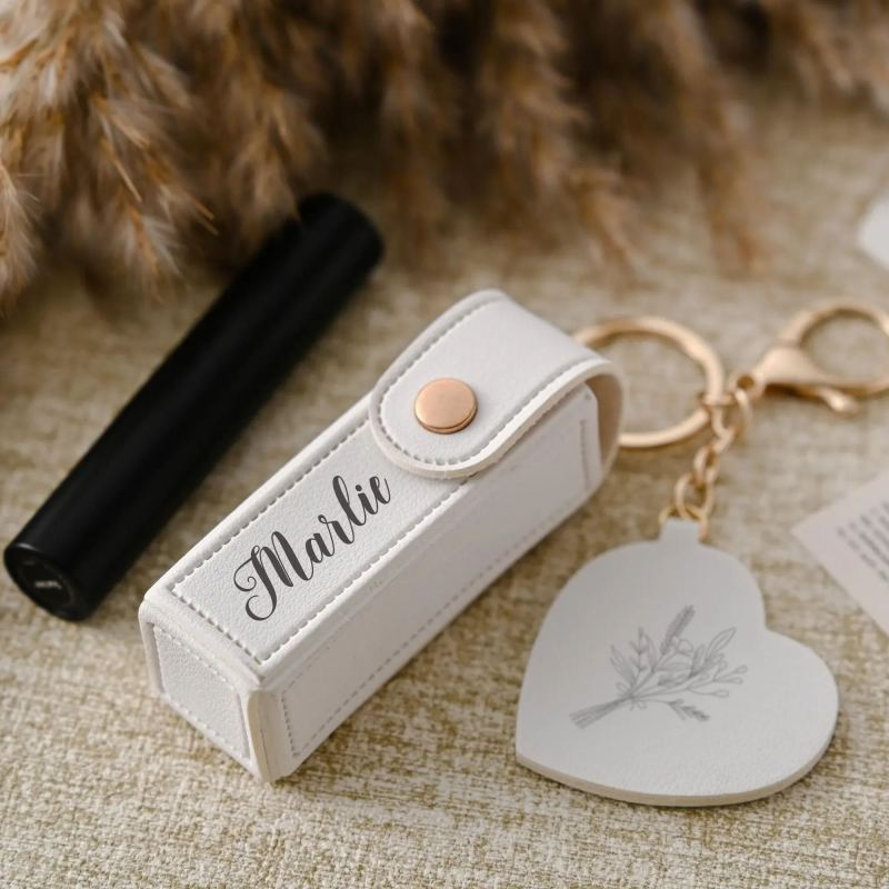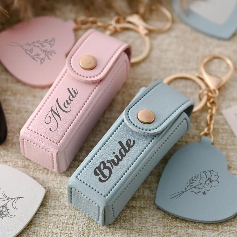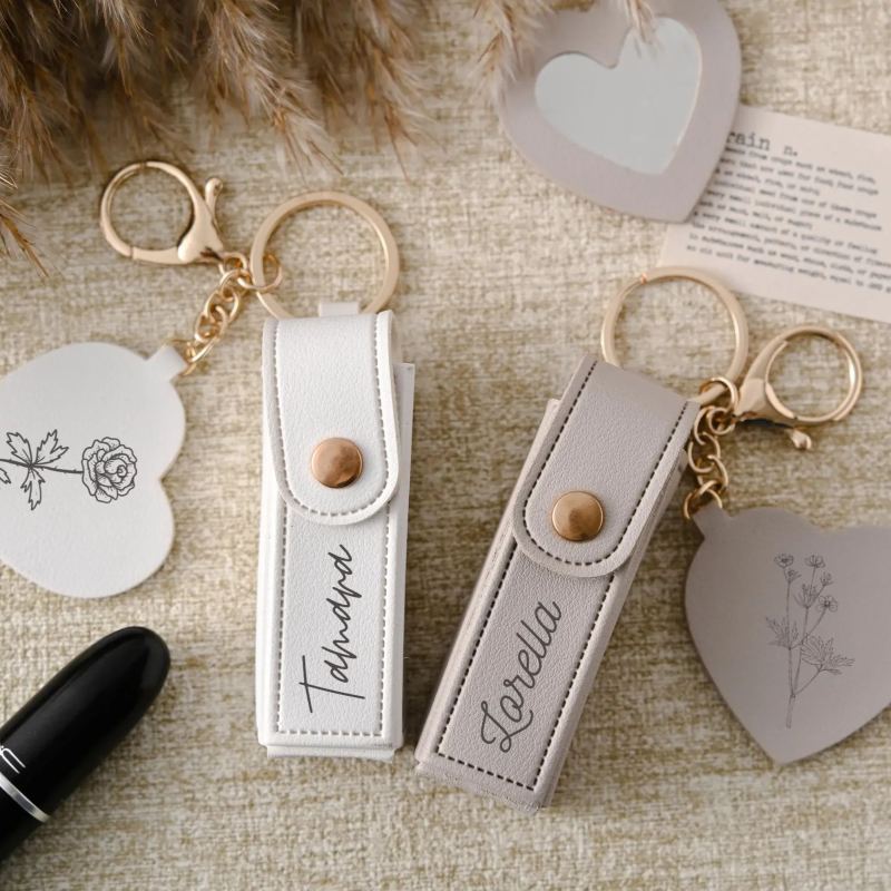 Portachiavi Personalizzato Con Borsa Per Rossetto, Nome Personalizzato, Borsa Porta Rossetto Anti-smarrimento, Custodia Per Rossetto Con Specchio, Regalo Per Lei