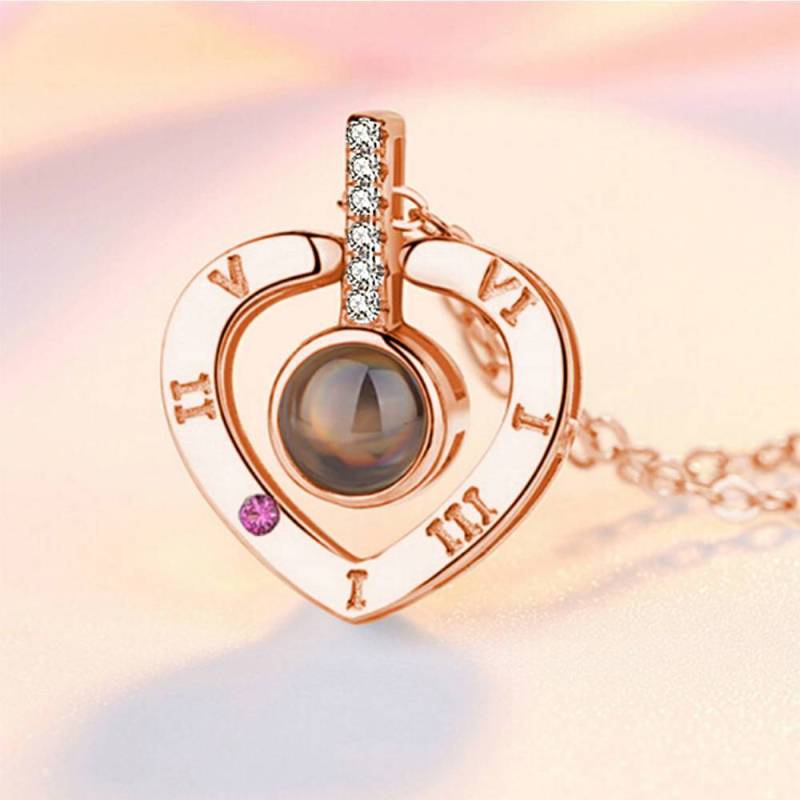 Foto Personalizzata Con 100 Lingue Che Dice Ti Amo Collana Di Proiezione A Forma Di Cuore Di Oro Rosa