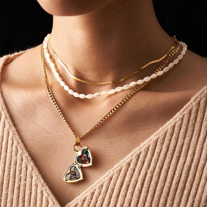 Collana Con Foto A Catena Tripla Collana Con Foto Personalizzata A Forma Di Cuore, Regalo Per Le Donne